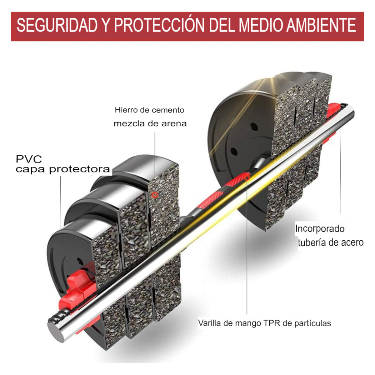 ¿Sueñas con un cuerpo tonificado y fuerte, pero no tienes tiempo ni dinero para ir al gimnasio? ¡El Juego de Pesas Ajustables 3 en 1 de 40 kg es la solución perfecta para ti! Este versátil set te permite realizar una gran variedad de ejercicios para esculpir tus músculos y alcanzar tus objetivos de fitness desde la comodidad de tu hogar.