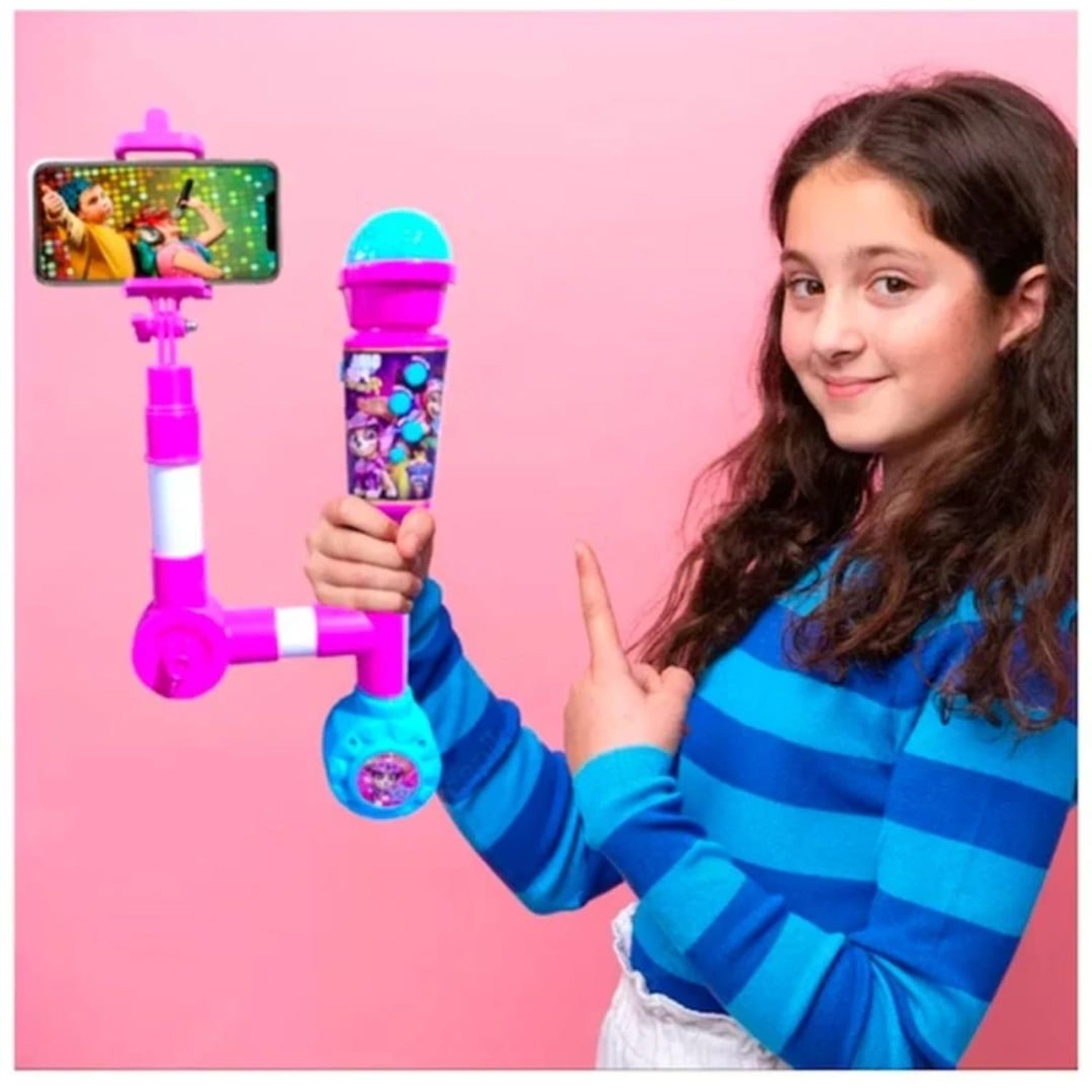 ¡Haz que cada momento sea un concierto con este increíble micrófono karaoke con soporte para selfie! Diseñado para los pequeños artistas, este divertido gadget permite cantar sus canciones favoritas mientras graban increíbles videos y selfies. Con luces LED, efectos de sonido y compatibilidad con smartphones, la diversión nunca termina.